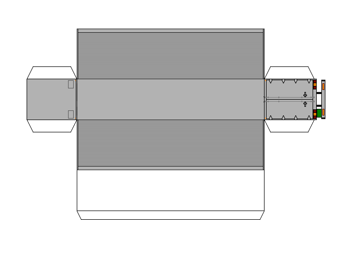 キャブ付きシャシーの荷台部分に載せてください。なお長さが3種類あり、短いものから順に無印の標準・ロングボディ・オバケ4tとなります。