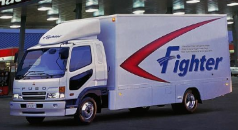 1984 年にデビューした当初のモデルで、これまで三菱ふそうの中型トラックは他社と異なり型式名のみでしたが、ファイターという新しい名前で登場しました。