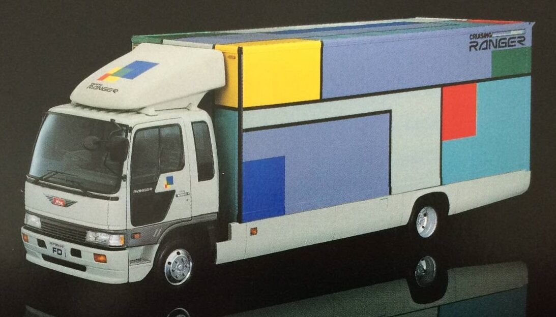 1984年にそれまでのKMレンジャーに代わるベッドレスキャブのレンジャーとして、20年ぶりのモデルチェンジで登場しました。 ベッド付きの3代目レンジャーとは全く異なる中型ベッドレス車専用のキャブで、シンプル&ストロングをテーマにウェッジシェイプを取り入れた斬新で軽快感のあるフォルムとしており、またドアハンドルが縦型のものとなっています。