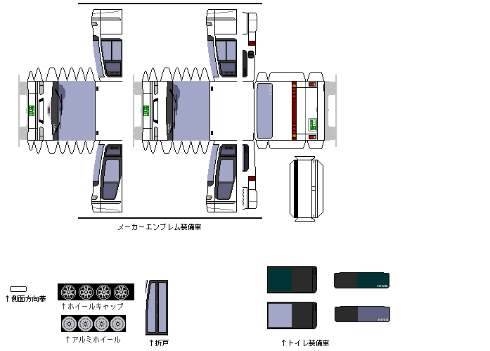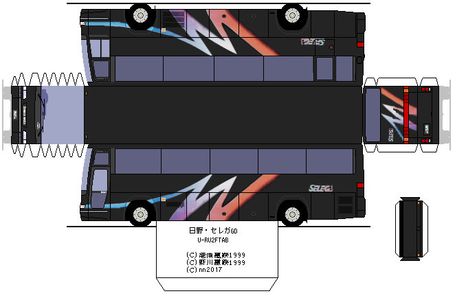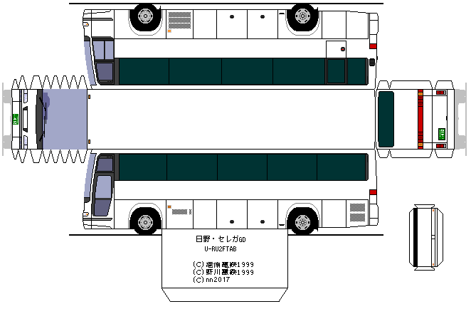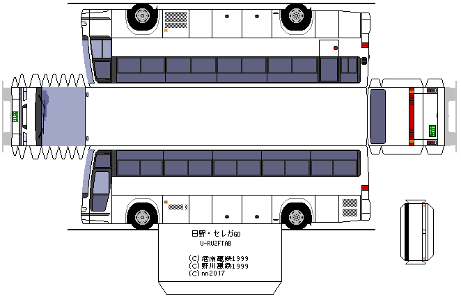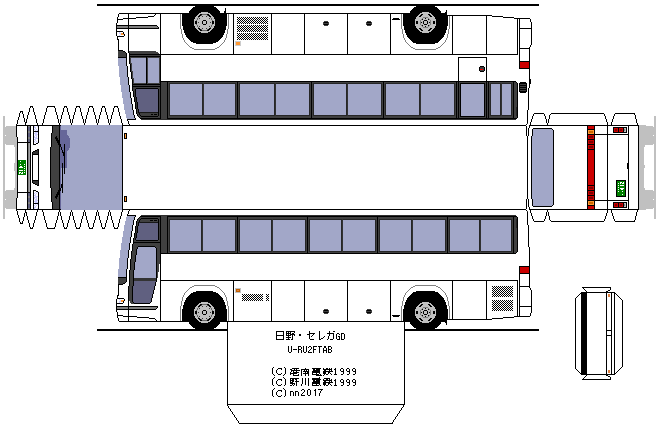 GD・メトロ窓・スイングドアの組み合わせとなっています。公営バスでは珍しいスーパーハイデッカー車かつセレガのグランデッカでは珍しいメトロ窓となっています。1990年の登場直後に導入され、1999年に貸切事業廃止された後に1台のみお隣の川崎市バスに移籍しています。