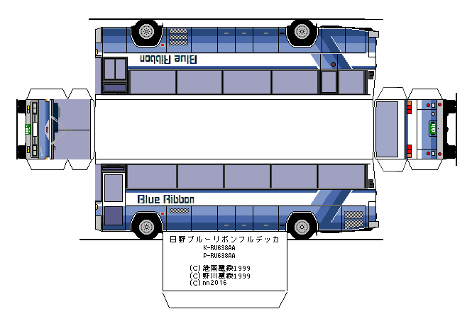 1982年のデビュー当時のモデルで、それまで生産されていたモノコック観光バスのRV/RCとスケルトン観光バスのRSを統合し、このスケルトンボディのブルーリボンRUに一本化されました。