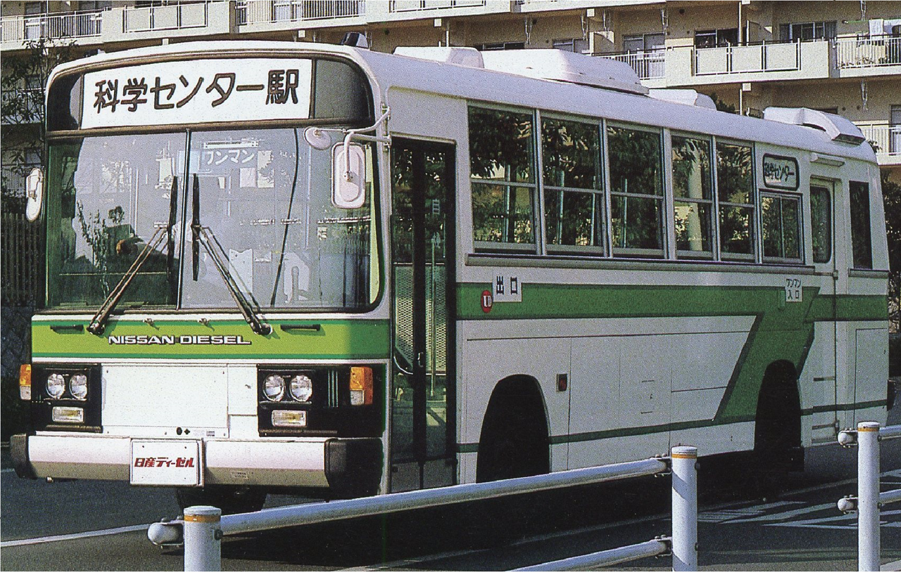 1988年に日産ディーゼルと西日本車体工業の共同開発によって登場しました。前面1枚窓が特徴的なオリジナルデザインの専用設計のボディを架装しており、1988年度のグッドデザイン賞を中型路線バスとして初めて受賞しました。