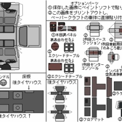 94モデル ロングボディ スーパーエクシードの内装です。(2WD/4WD共通)内装の組み立て方については下記のリンクを参照してください。:内装の組み立て方:ペーパークラフトリストに戻る内装内装2内装3内装4※オプションパーツについて①のものはペイントソフトで貼り付けてから ...