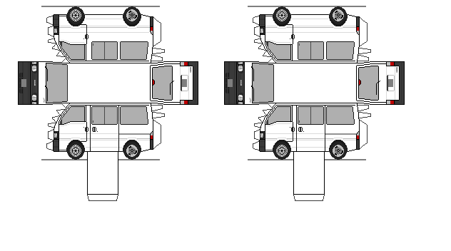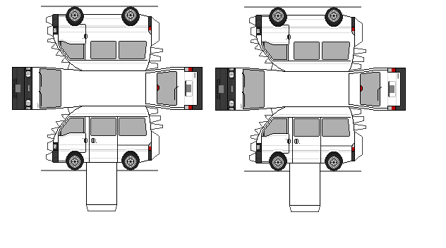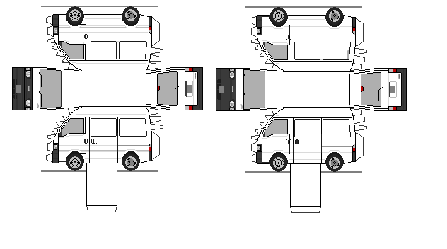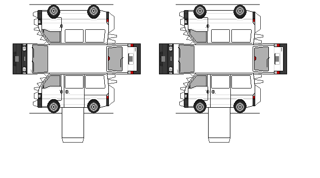 :ペーパークラフトリストに戻る :CDフロントのウィンドウが手回し式になり、3人乗りのみの設定になるなど装備を省いた廉価グレードです。