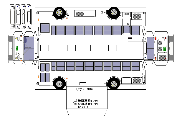 ペーパークラフト いすゞ・BU10 前期型 2024年03月10日 1972年のモデルチェンジで登場し、標準純正ボディの川重製ボディにおいては、前年の低床試作車BU06で用いられた大型平面ガラス2枚の正面スタイルを本格採用し、より角張った斬新なイメージになりました。この変更はバスのワンマン化が進む中で前扉を拡大して乗り降りしやすくするためとなっています。後部の窓も大型のものとなり、方向幕の収納もしやすくなりました。:ペーパークラフトリストに戻る前中ドア・郊外型前中ドア・都市型前後ドアトップドア3ドア前中ドア・郊外型・メトロ窓トップドア・メトロ窓オプションパーツ < 前の記事次の記事 > コメント コメントフォーム 名前 コメント 記事の評価 リセット リセット 顔 星 情報を記憶 コメントを投稿する