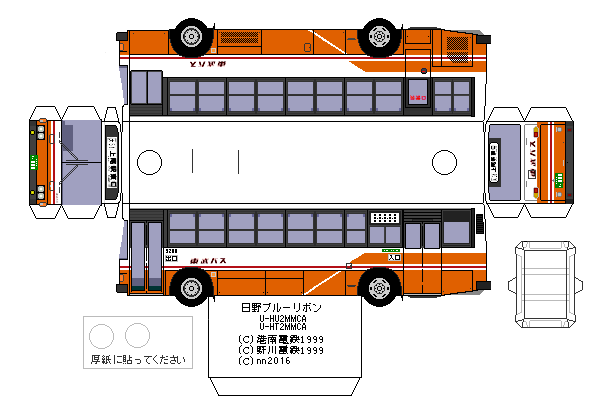 ペーパークラフト 日野・ブルーリボン ツーステップ U-HT-2MMCA/U-HU-2MMCA