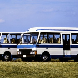 1982年のデビュー当時のモデルです。5段重ねのグリルが特徴となります。10年ぶりのフルモデルチェンジで登場し、ベースとなった小型トラックの2代目タイタンをそのままマイクロバスにしたようなデザインが特徴です。先代モデルでもフロントデザインこそタイタンと共通だった ...